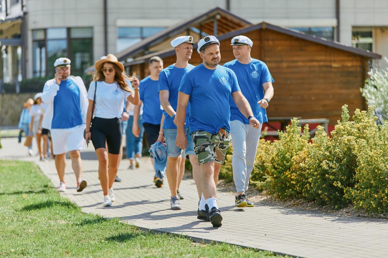 На этом мероприятии сотрудникам предстоит стать матросами. В начале мы их облачили в соответствующий матросам дресс-код. До того, как отправиться в плаванье нашим начинающим матросам необходимо пройти подготовку к жизни на судне – научиться стоить маршрут, вязать крепкие узлы, прокачать доверие ко шкиперу, обучиться действиям при затоплении судна и улучшить меткость.