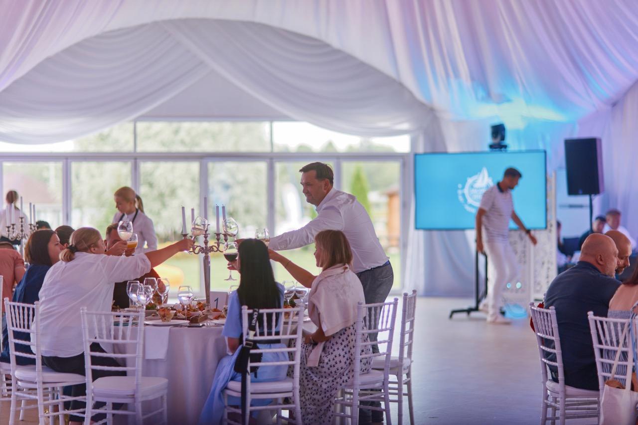 На протяжении тимбилдинга гости зарабатывали фишки, которые можно поставить вечером на подарки. Награждение лучшей команды перешло в активную вечернюю программу.